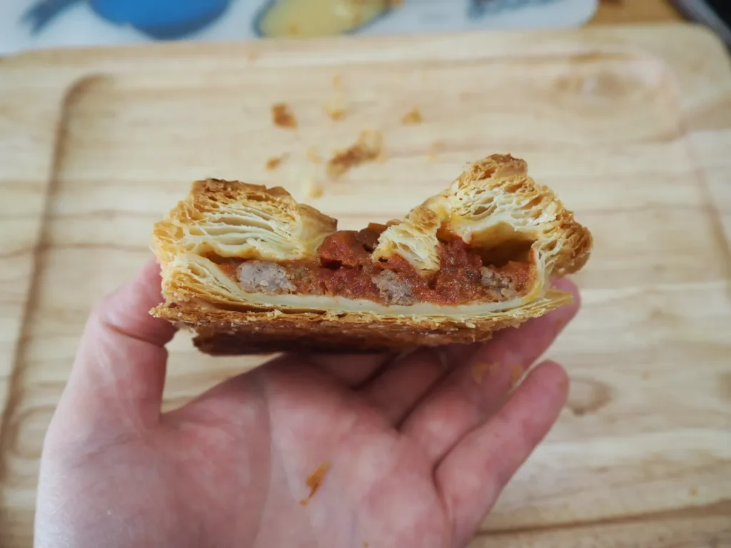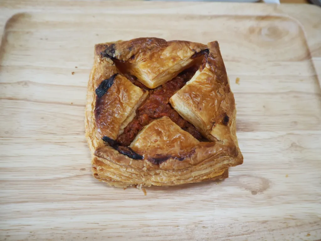 特徴: サクサクのパイ生地に自家製のボロネーゼを入れて焼き上げた一品。しっかりお肉の味がします。お酒のあてにいかがでしょうか。こちらがデブ熊のイチオシ。