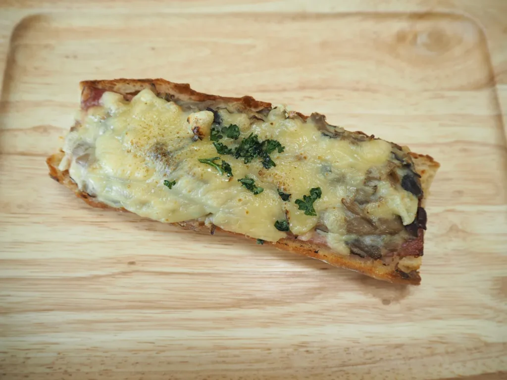特徴: キノコとホワイトソースとハムが乗ったこちら。トリュフの香りが口いっぱいに広がります。
