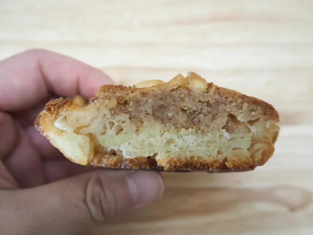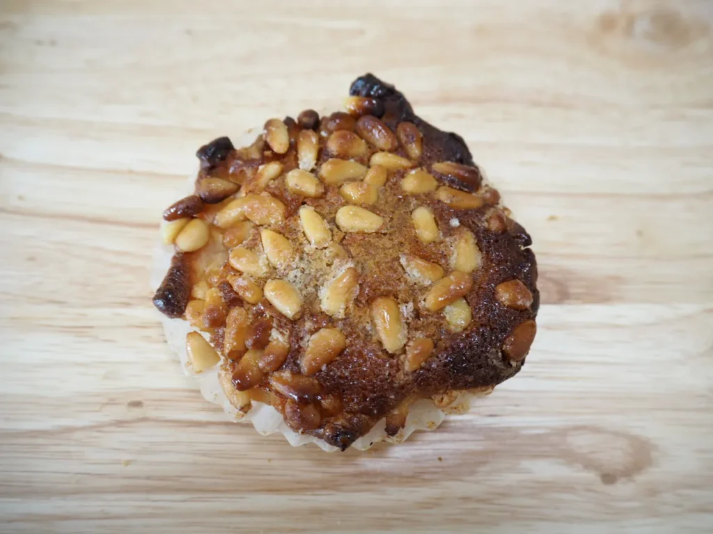 特徴: クロワッサン生地にアーモンドクリームと松の実、ノチェロ(くるみのお酒)で仕上げたスイーツ感覚の一品。こちらがイチオシです。