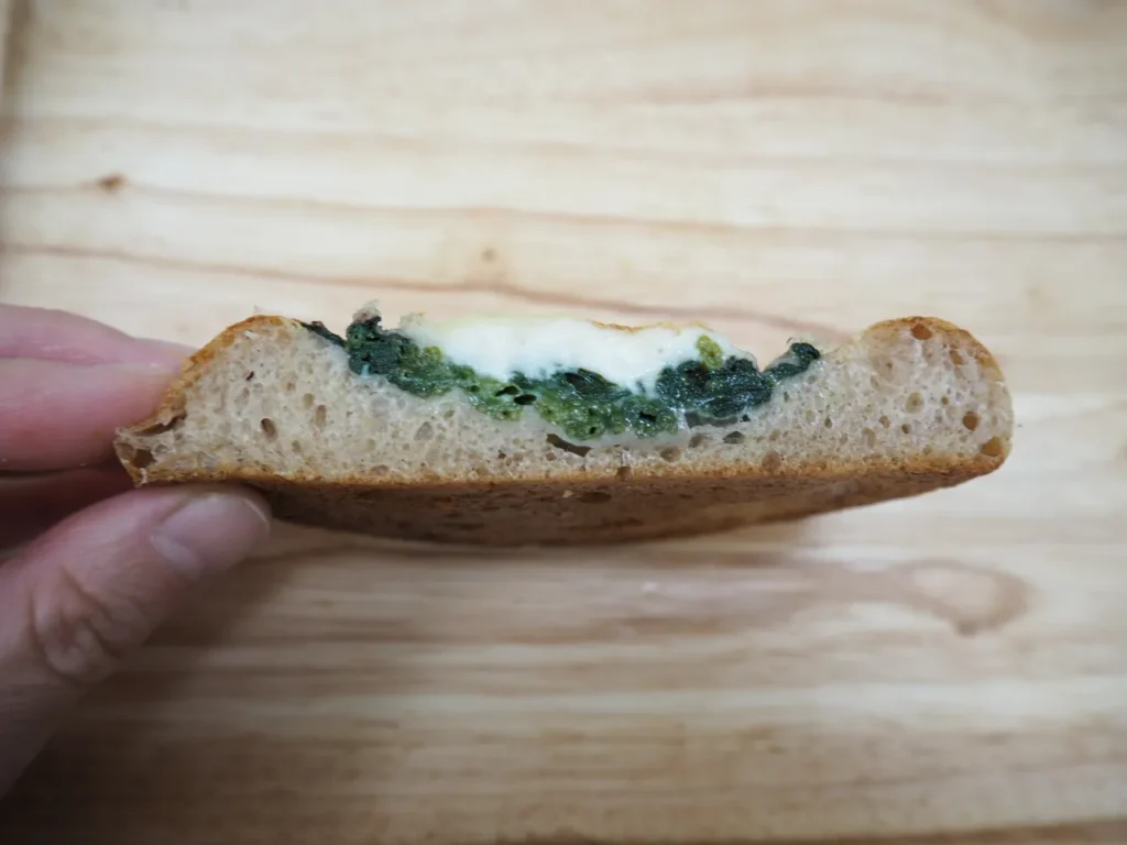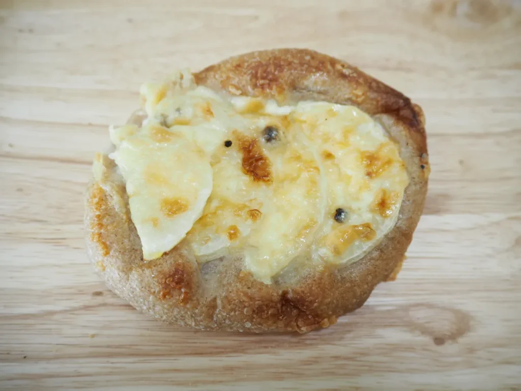 特徴: 自家製ホワイトソースにゴルゴンゾーラチーズを乗せ焼いたおかずパンです。