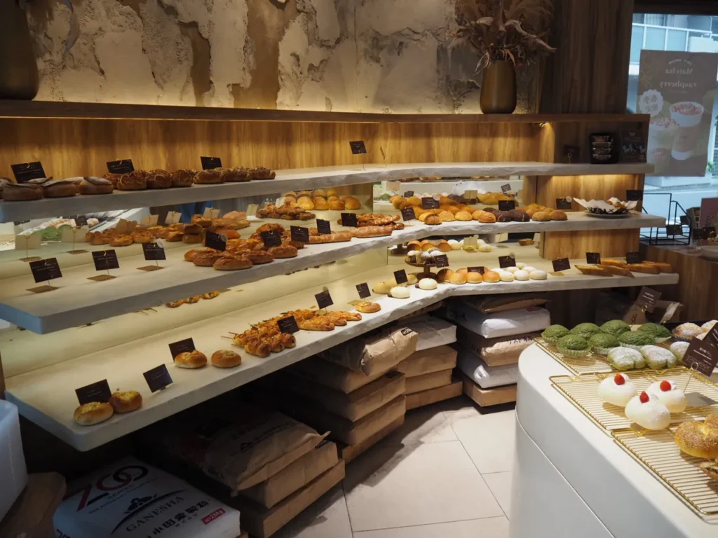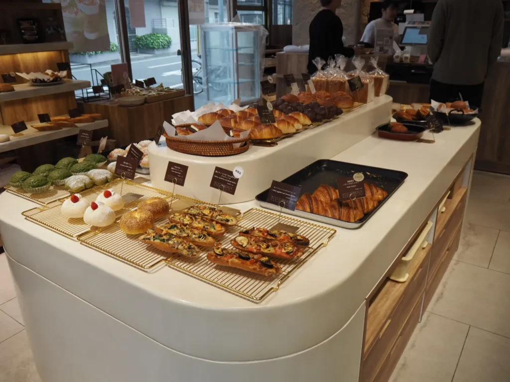 パングラム(PANGRAM bake shop & café)のラインナップは、定番のクロワッサンなどハード系を中心に、焼きたてのパンが所狭しと店内に並んでいます。価格帯は200円~300円台が中心で、今回の購入分の平均価格は350円ほどでした。