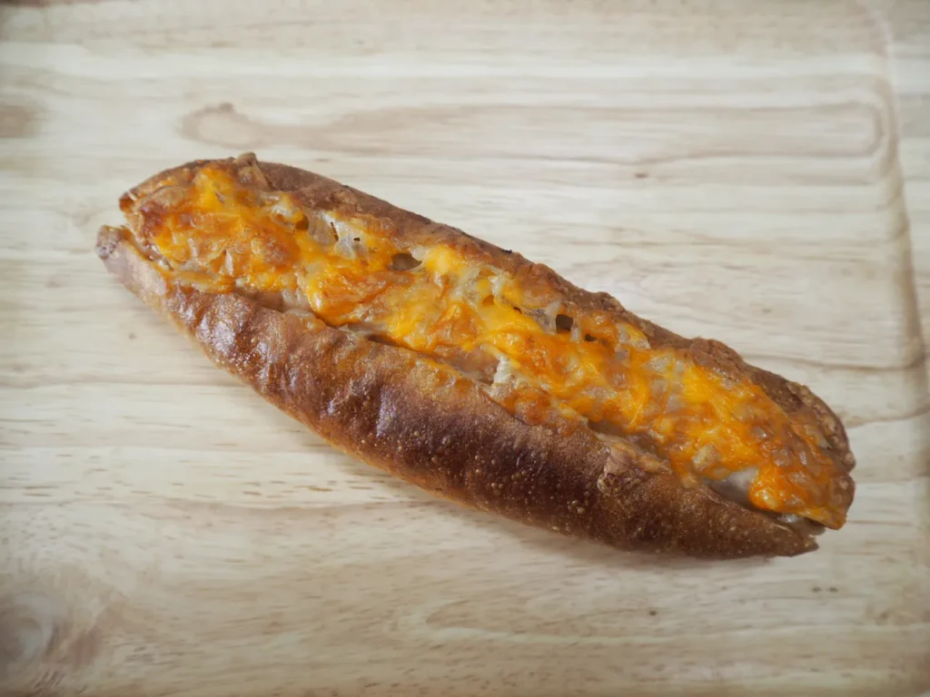 特徴: ハードなパンにジューシーなソーセージとチーズがおいしい定番の一品です。アルザス地方料理のシュークルート(キャベツの千切りと塩とジュニエーブルというネズの実を漬け込み発酵させたもの)が入っています。