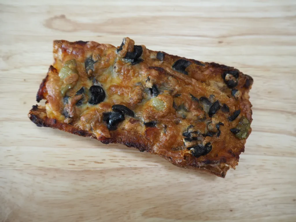 特徴: カリカリの生地にツナとオリーブを混ぜ込んだ一品。意外に味が濃くないのでペロッと食べられます。