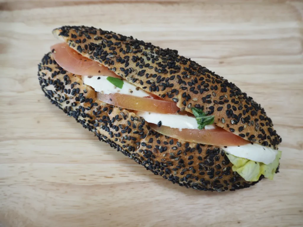 特徴: チーズとトマトとレタスをサンドしてあるこちら。生地の優しい甘みと黒ごまの香りが際立つシンプルな味がおいしいです。こちらがデブ熊のイチオシ。