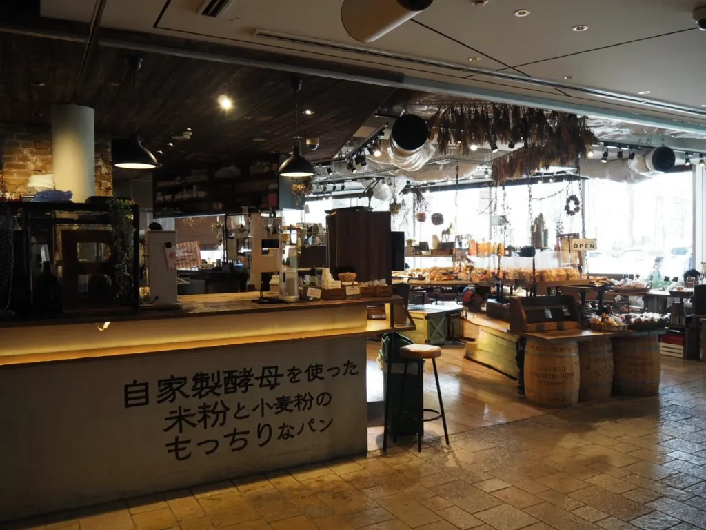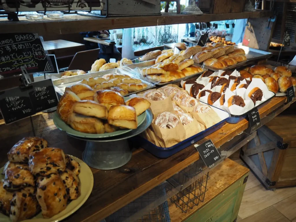 ザ・グラウンズベイカー(THE GROUNDS BAKER)は大阪・枚方T-SITE内にある人気ベーカリー。Locai Farm to Tableをテーマに、地元枚方の農園で採れた野菜や米を使ったパンなど、その土地の食材を使ったオリジナルのパンを提供しています。店内のデザインは農園のパン工場をイメージされているそうでおしゃれ空間になっています。大阪・梅田にあるR bakerさんと同系列のお店らしく、自家製酵母を使った米粉と小麦粉のもっちりなパンが特徴です。広めのイートインスペースもあって便利ですね。