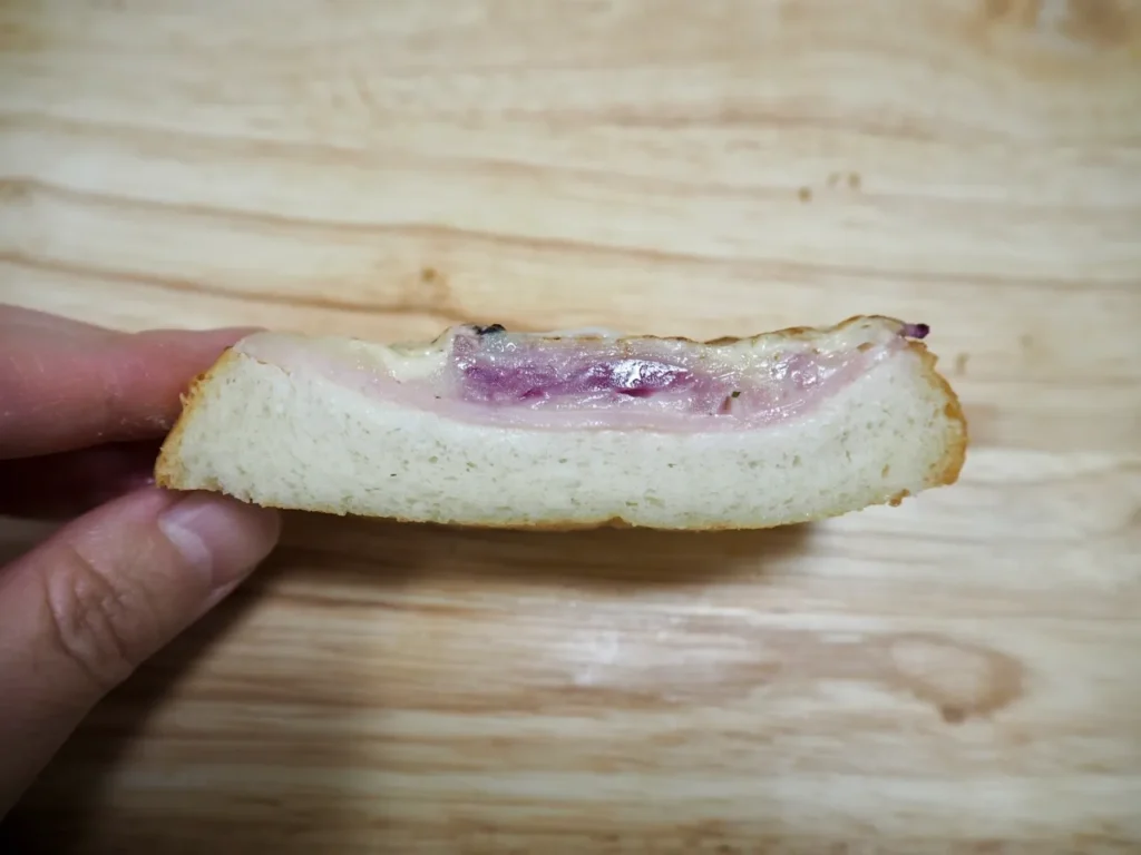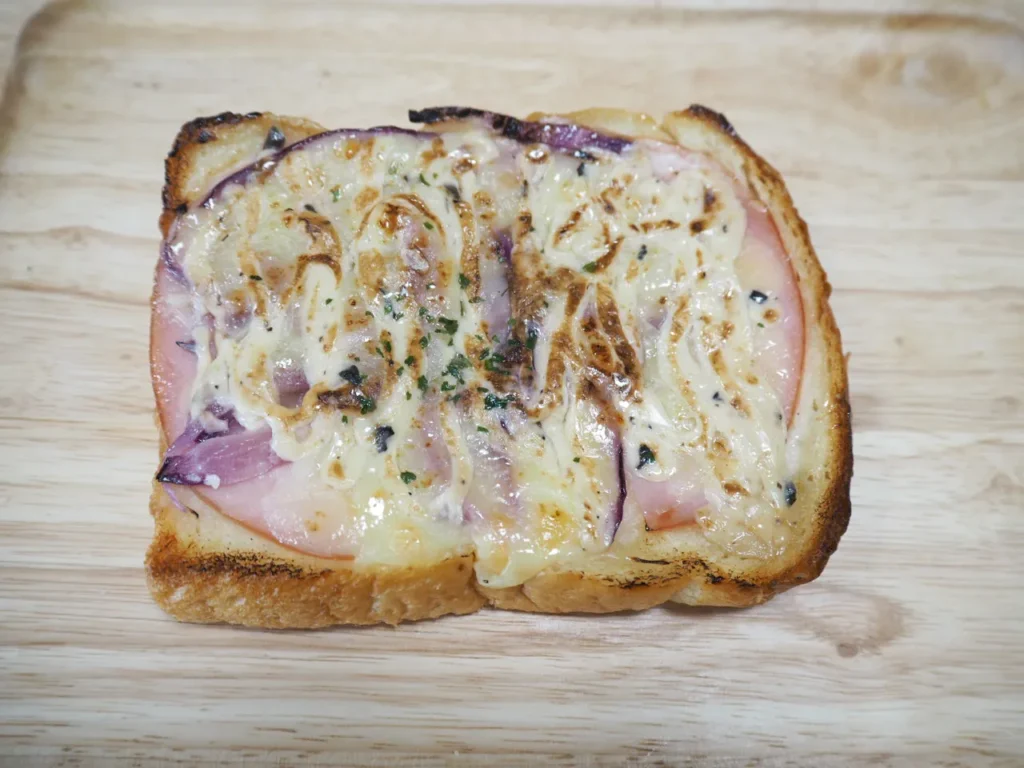 特徴: ハムの上に乗った紫玉ねぎの食感が心地よい一品です。