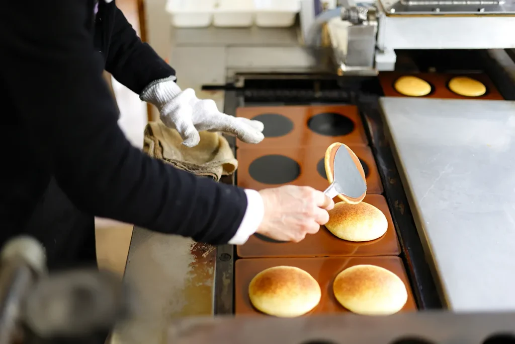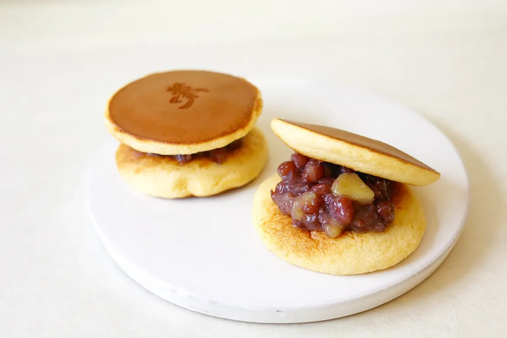 定番の「夢銅鑼焼」に挟まれているのは刻み栗の入ったつぶあんです。「ぜんざいに近いかな、という柔らかさで炊いています。みずみずしく、フルーティーな味わいで、あんこが得意でない人でも、ウチのあんこなら大丈夫と言っていただけることもあるんですよ」。