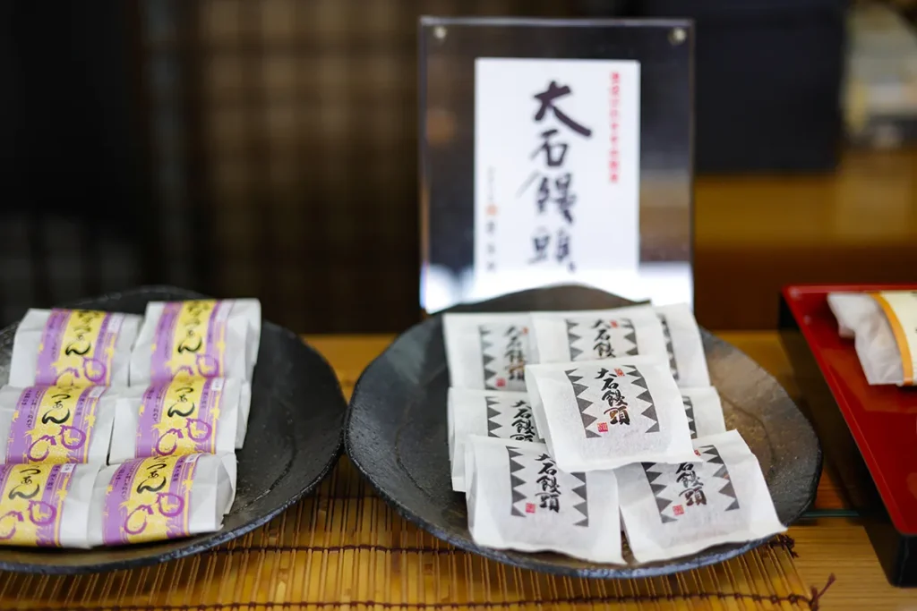 また、山科は忠臣蔵で知られる大石内蔵助ゆかりの地。そんな史実にちなんで山科の名物になるようにと初代が考案した饅頭「大石饅頭」も人気です。