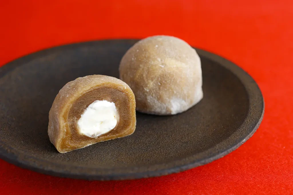 そんな「山科わかさ屋」を象徴する商品が「珈琲大福」です。生クリームを白あんで包み、さらにコーヒーを練り込んだお餅で包みます。こだわったのは一体感。口の中で噛むほどにコーヒーを飲んだような感覚になり、また食べ終わると、ふっとコーヒーの香りが鼻に抜けます。