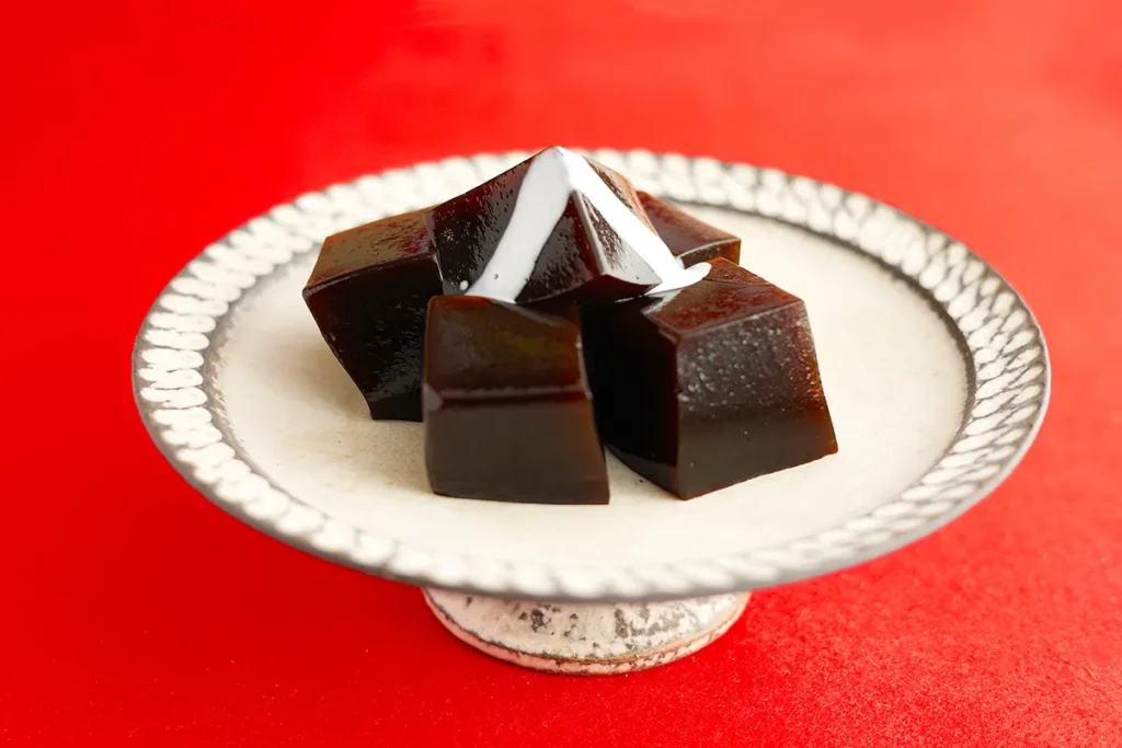 「わらび餅にも練り込んでみました」。そう言って杉山さんが見せてくれたのが「珈琲わらび」。コーヒーが練り込まれたわらび餅なので、ゼリーとは全く違う弾力が感じられます。「私自身もコーヒーが大好きなので、コーヒーのよいところを出すように工夫しました。女性のお客様に人気ですよ」。