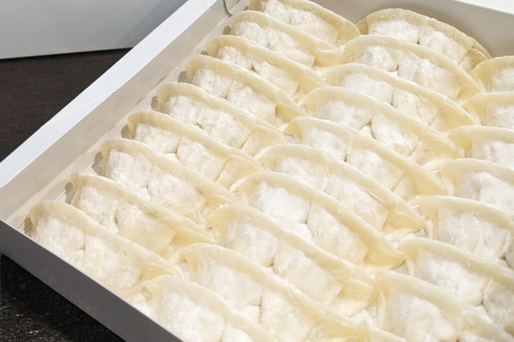 沖縄産と霧島産のブランド豚を使うなど、厳選素材にこだわった持ち帰りの生餃子専門店。国産素材100%で毎日包みたてを楽しめる定番の「こはる餃子」をご賞味あれ。
