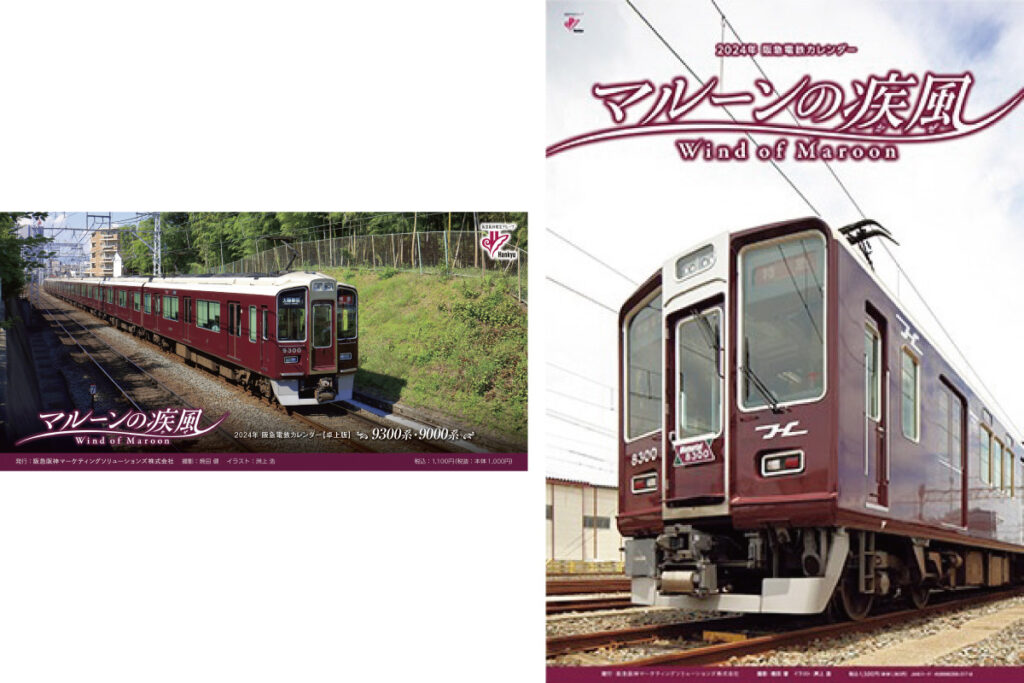 四季折々の美しい阪急沿線を疾走する阪急電車の写真が盛りだくさんで、好評発売中の2024年度版カレンダー「マルーンの疾風」。