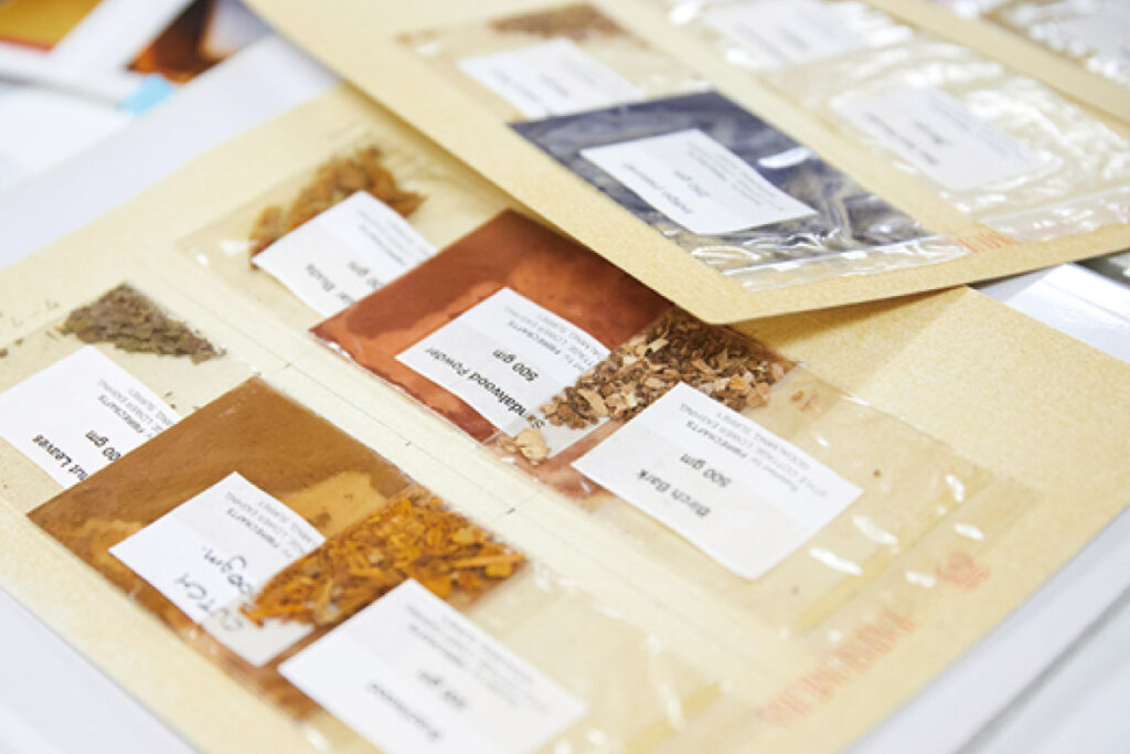 チマキの材料は、藁、笹、い草。「藁を確保するため、知人を通じて京都・京北で稲刈りから始めました」。それをきっかけに集落との繋がりができ、現在はここに住む約10人が家事の傍ら一年を通してチマキ作りに励んでいる。
