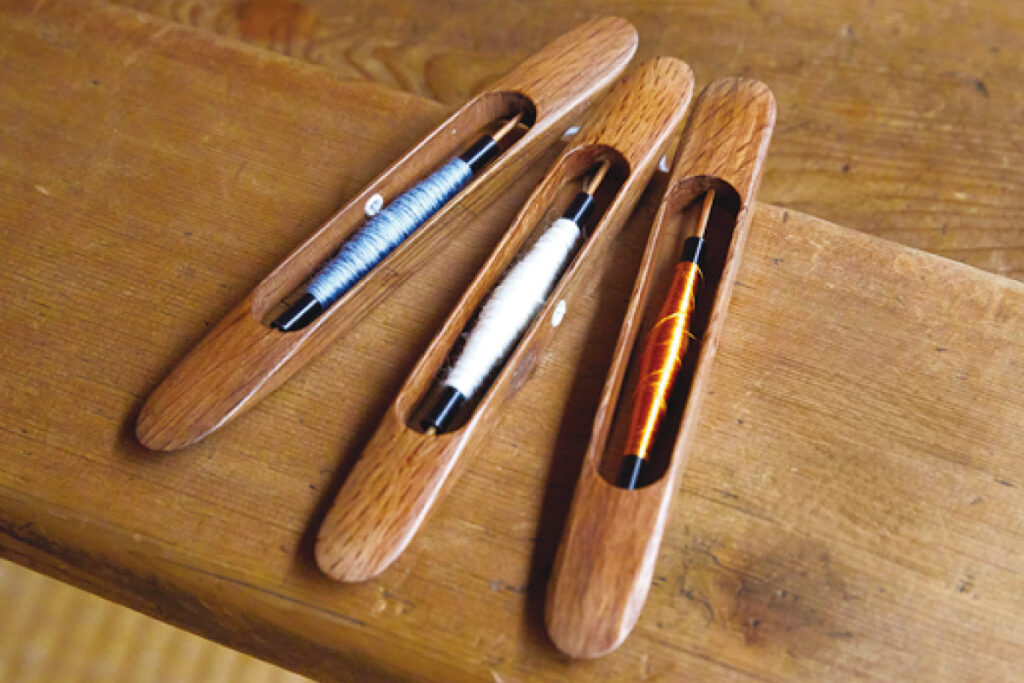また一方で山鉾は、釘を一切使わずやぐらを組む手伝方(てつだいがた)、屋根や柱を施す大工方(だいくがた)、大車輪を裁く車方(くるまがた)など、数々の職人たちによって支えられている。今回、函谷(かんこ)鉾の正面を堂々と飾る巨大なタペストリーの復元を手がけた織物の匠・白井さんを訪ねた。