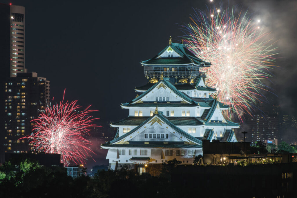 祇園祭と同じく日本三大祭りの一つである天神祭。御神霊への奉納と感謝を込めて打ち上げられる奉納花火は、夏の盛りの大阪の街ににぎわいを添えている。