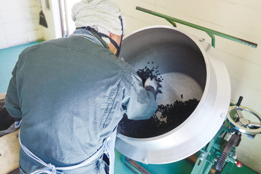 この天神祭の奉納花火を担当しているのが、1950年創業の葛城煙火。天神祭用の花火の製造は奈良にある工場で1月からスタートする。まず取り掛かるのは、花火の色や形となる〝星〟作り。球体型の機械に粘度のある火薬を入れて回転させ、遠心力で丸くし、天日干しする。これを何度も繰り返し、1㎜ずつ大きな球体にしていく。一度に大きくすると割れやすいためだ。