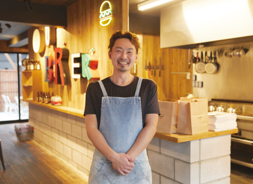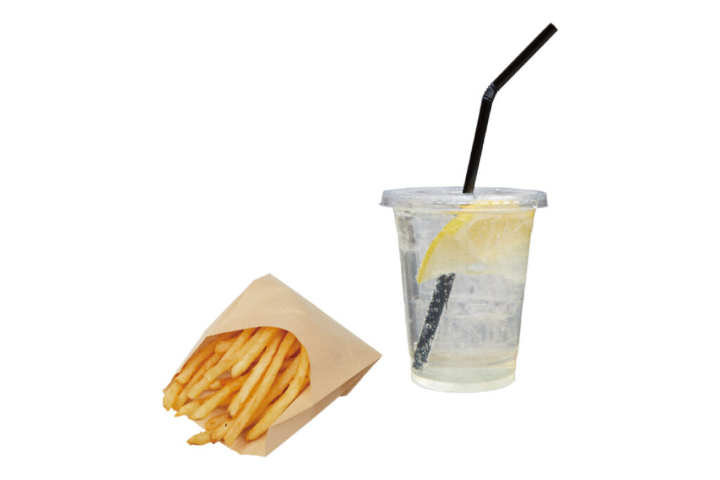 「OLU BURGER KYOTO/IBARAKI(バーガーキョウト/イバラキ)」が力を入れるのは、京都和牛「平井牛」を100%使用した鮮度の良いパティ。繋ぎは一切使用せず、和牛のうまみが強いからこそ味付けは塩のみ。和牛パティからあふれ出る肉汁を自家製バンズが受け止める! ドリンクは炭酸でさわやかに。