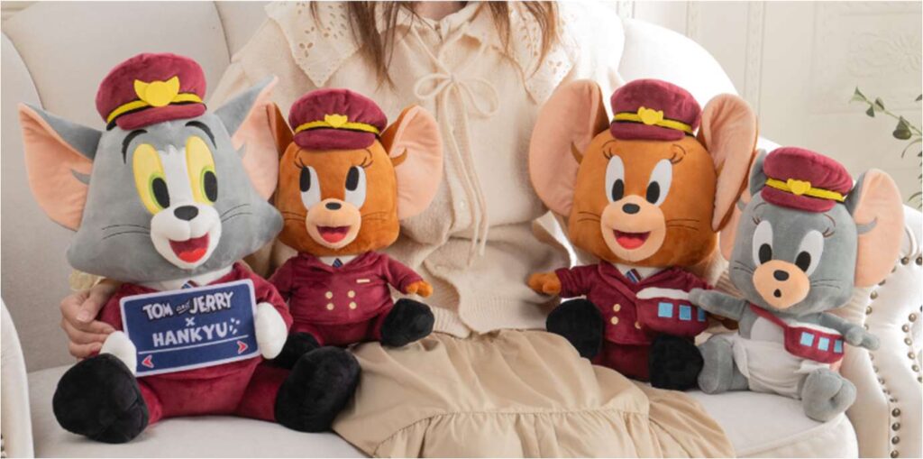 その企画の一環として、阪急神戸線・宝塚線・京都線で運行しているラッピング列車「トムとジェリー号」の乗務員室に添乗している“トムとジェリー”“ジェリーとタフィー”の2種類の「添乗ぬいぐるみ」と、オリジナルデザインの「スカジャン」を、2025年2月19日(水)~3月19日(水)までの期間限定で受注販売している。