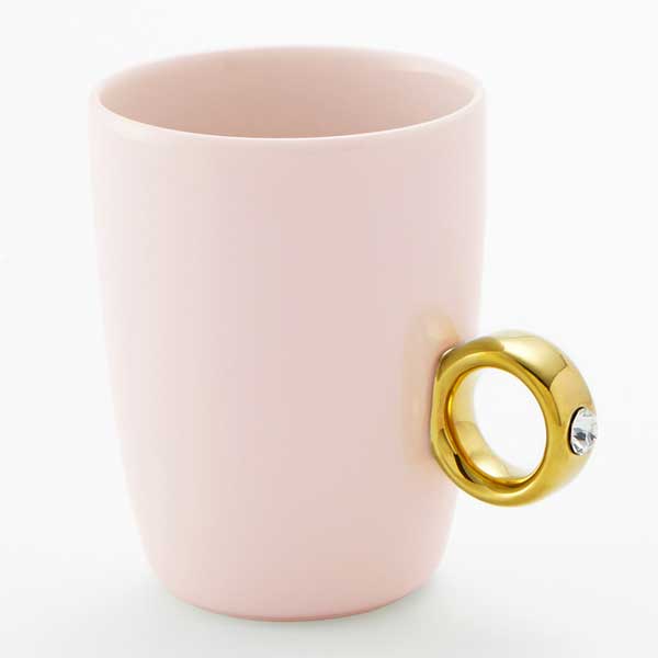 指輪をはめるようにカップの取っ手に薬指を入れて、そのままカップを持つと、まるで本物の指輪を付けているかのように見えるのが、Floyd カップリングです。