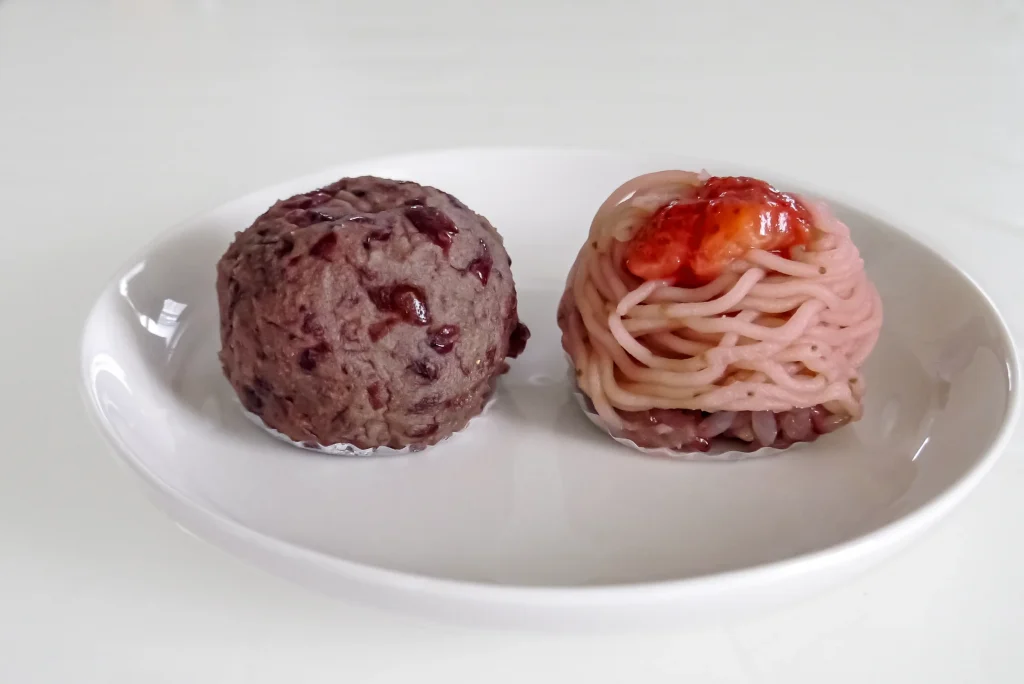 編集I「ピンクの絞られたクリームも甘さはあるものの、酸味がわかるほどイチゴ!おはぎには黒米が使用されているんですね」