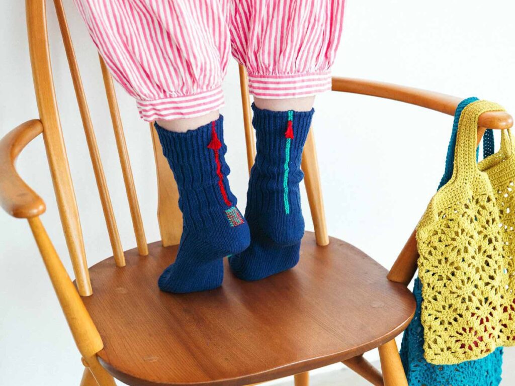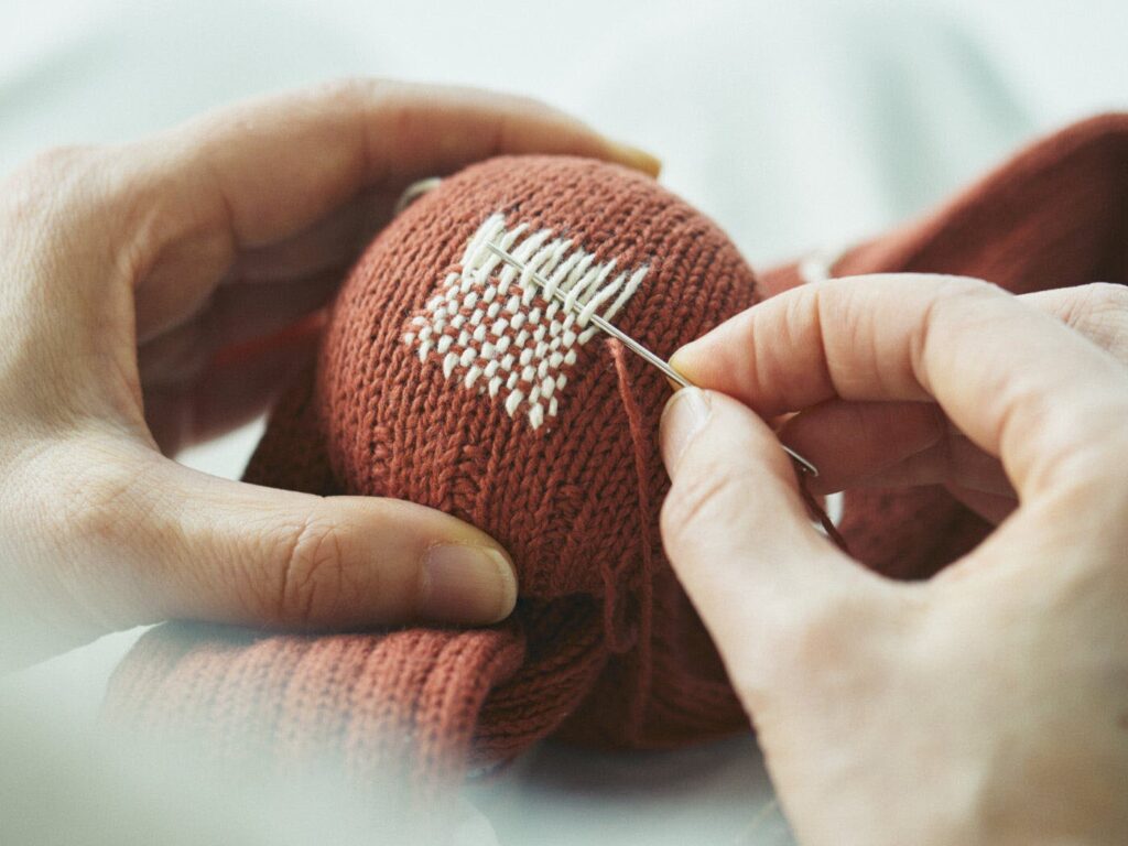 もともとは工場で廃棄されていた「落ちわた」を再利用してできた靴下に、ダーニング(補修のための針仕事)でかわいい装飾をしてみよう!