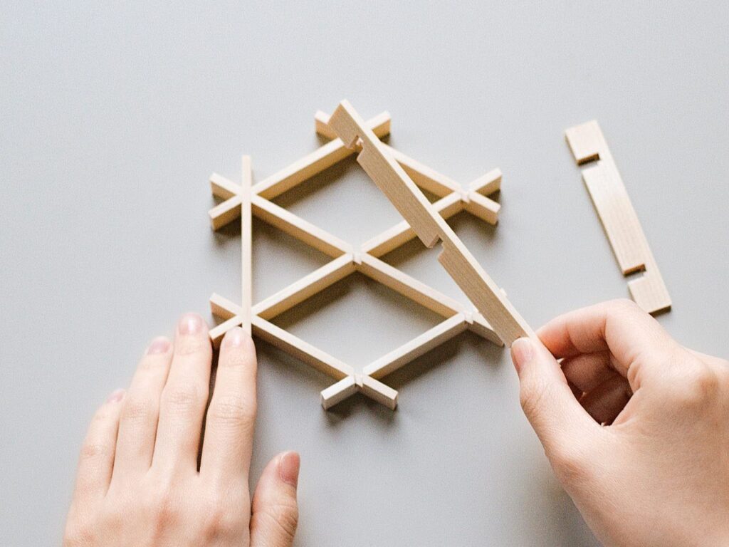 「組子細工」とは、千年以上前から建具装飾に使われてきた伝統技法。釘を使わず部品を組み、幾何学模様を表現する。