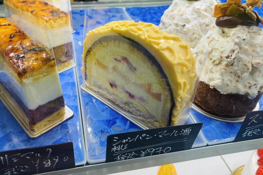 注目すべきは、「シャンパンマール酒ケーキ」。シャンパンとマール酒を贅沢に使ったこのケーキは、他では味わえない深い風味が特徴です。ふわっと広がる香りと、口に入れた瞬間に広がるリッチな味わいが、まさにこのお店の唯一無二を象徴する逸品です。