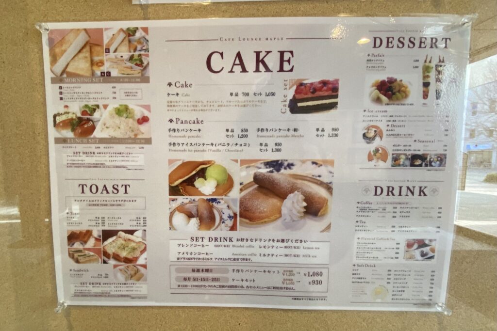 毎月5が付く日(5日・15日・25日)にはケーキセット通常1,050円(ケーキ+コーヒーまたは紅茶)が930円となるサービス、毎週木曜日には手作りパンケーキセット通常1,200円が1,080円となるサービスデイも設けられています。