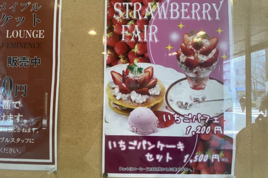 まだ店内を利用したことはないものの、通りがかりに目に入ったイチゴパフェのポップがとにかく魅力的で、思わず「入ってみたい!」と足が止まりました。