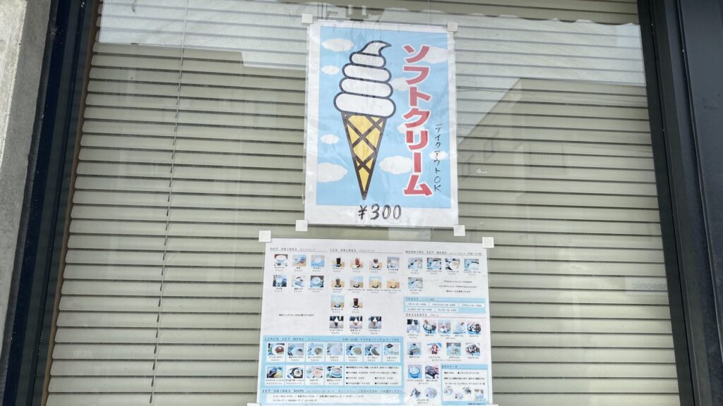 お店の魅力は、何と言ってもそのリーズナブルな価格帯。例えば、ソフトクリームはテイクアウトOKで、なんと300円!そのほか、ドリンクは350円~、ケーキは300円と、どれもお財布に優しい価格です。