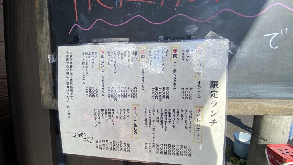 | 施設・店舗・スポット名 | 焼肉料理 味一人(みいと) |