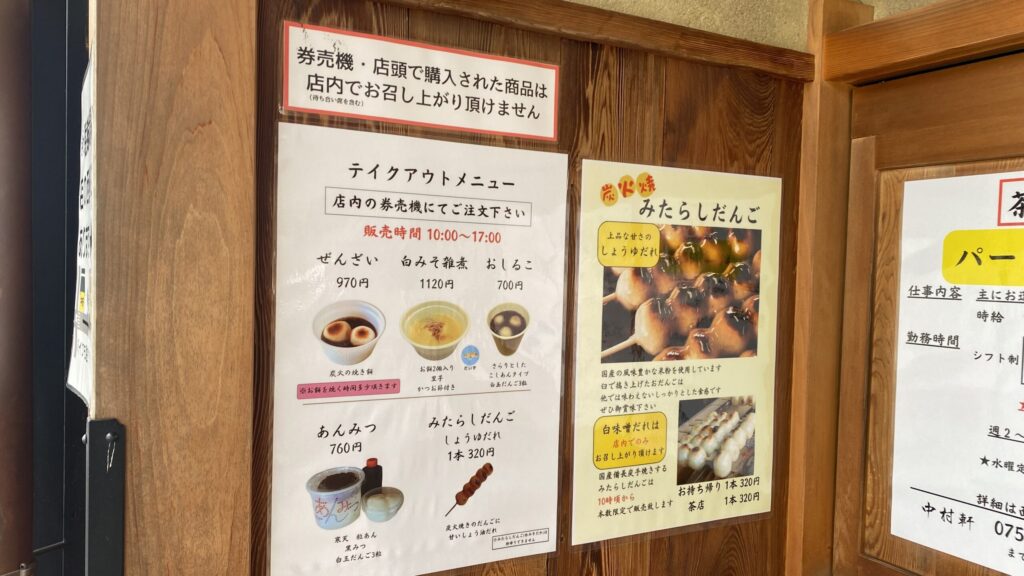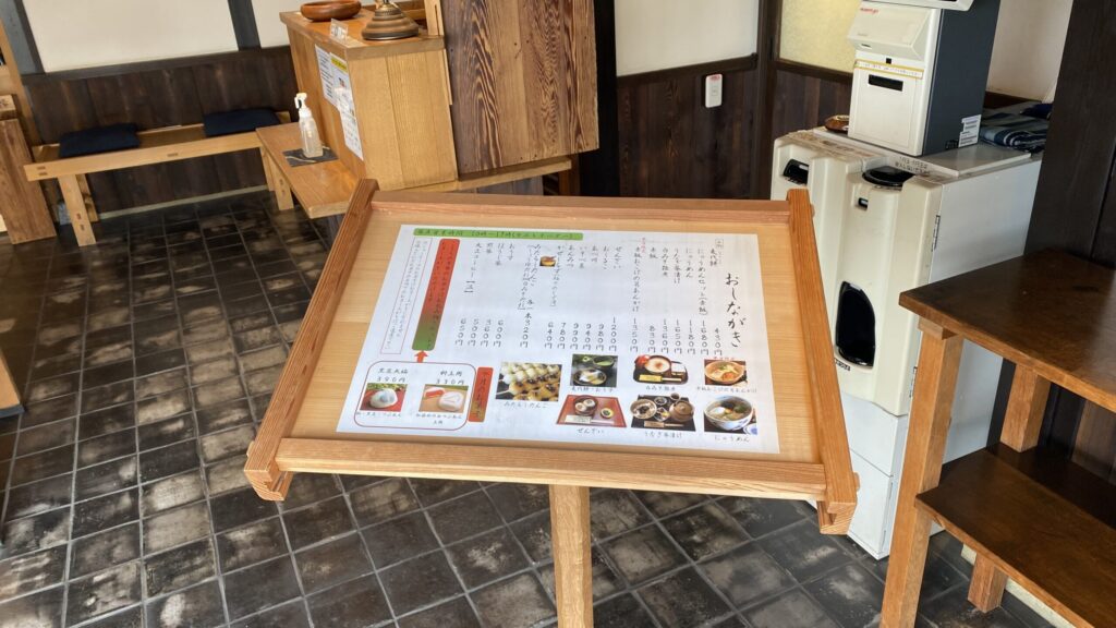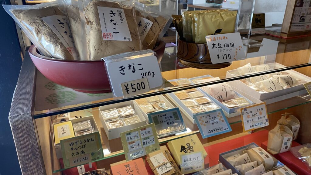 中村軒は、テイクアウトの和菓子だけでなく、隣接する茶店での食事も魅力的。名物の麦代餅をはじめ、にゅうめんやうなぎ茶漬け、赤飯、おぜんざいやあんみつなど、どれもここでしか味わえない特別なメニューばかりです。また、大豆コーヒーや国産大豆のきな粉も店頭で販売されており、これらの食材を使ったメニューも絶品です。