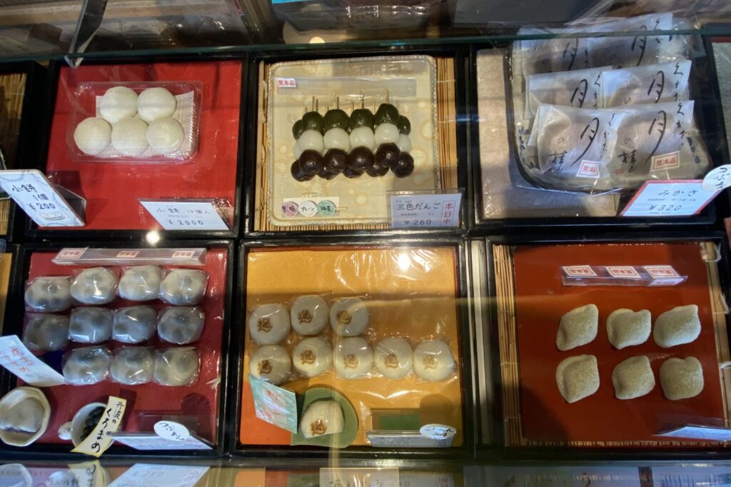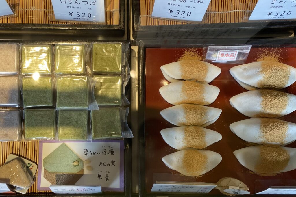 中村軒の店内に並ぶのは、どれも手作り感溢れる美味しそうな和菓子ばかり。麦代餅、かつら饅頭、きんつば、六方焼き、うきはし、三色だんご、水尾、しそ餅…その種類は数え切れません。あまりに種類が豊富すぎて、一度に選びきれないほど。それぞれが伝統を大切にしながらも、どこか新しい感覚を持っています。