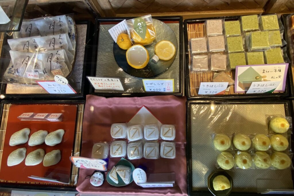 桂駅から徒歩約15分、桂離宮前のバス停すぐにある「中村軒」。この場所に足を踏み入れると、昔ながらの和菓子の香りがふんわりと漂い、思わず立ち止まってしまうほど。たくさんの種類の和菓子が並んでいて、どれにしようか迷うのも楽しみの一つです。