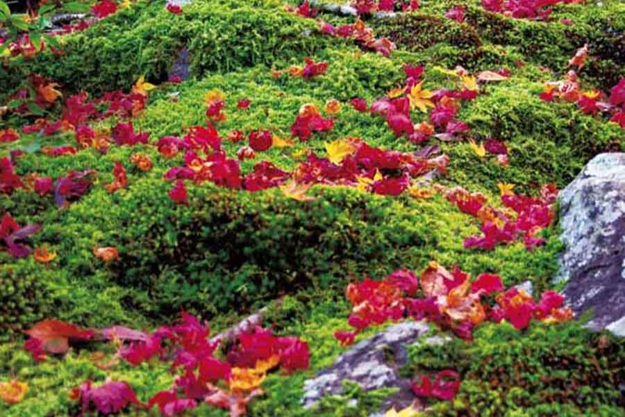 奥嵯峨屈指の紅葉の名所。竹林や苔とのコントラストを楽しめる。