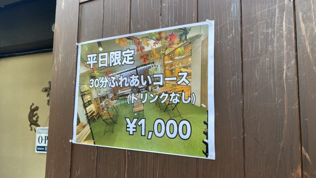場所は全国から多くの芸能人が訪れる車折神社から徒歩3分ほど。周辺には和食店やインド料理店もあり、参拝のあとのランチ、そして爬虫類カフェでゆったりティータイムという一日の流れが楽しめる立地です。カフェではドリンクも提供されており、ソフトドリンクはもちろん、アルコールや京都らしいお抹茶まで選べます。ドリンクなしで触れ合いだけを楽しむプランや、学生に嬉しい学割も用意されています。