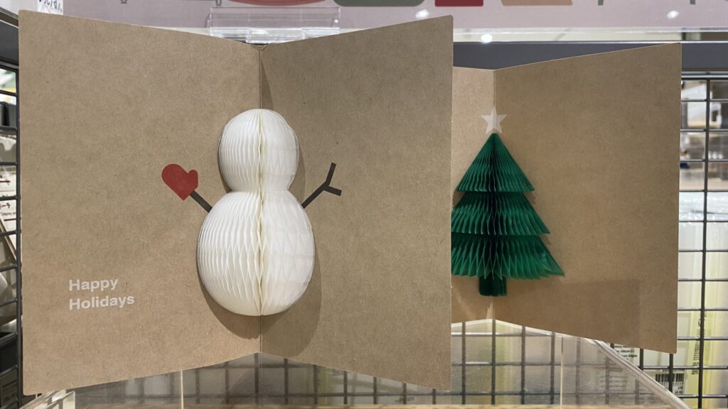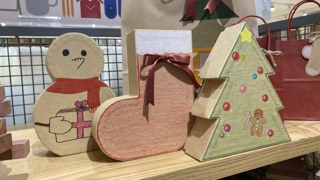 クリスマスが近づくと、街中が少しずつ華やぎ、心まで温かくなる季節を感じます。そんな気分のまま無印良品を訪れると、シンプルで落ち着いた店内に並ぶクリスマスアイテムが、静かに季節の訪れを知らせてくれました。ふと目にとまったのは、自分で色を塗ったり絵を描いたりして自由にアレンジできる手作りのプレゼントボックス。クラフト素材の素朴さが心地よく、展示されていたサンプルは色鉛筆で丁寧に彩られ、リボンを貼っただけの飾り付けなのにとても可愛らしく感じられました。