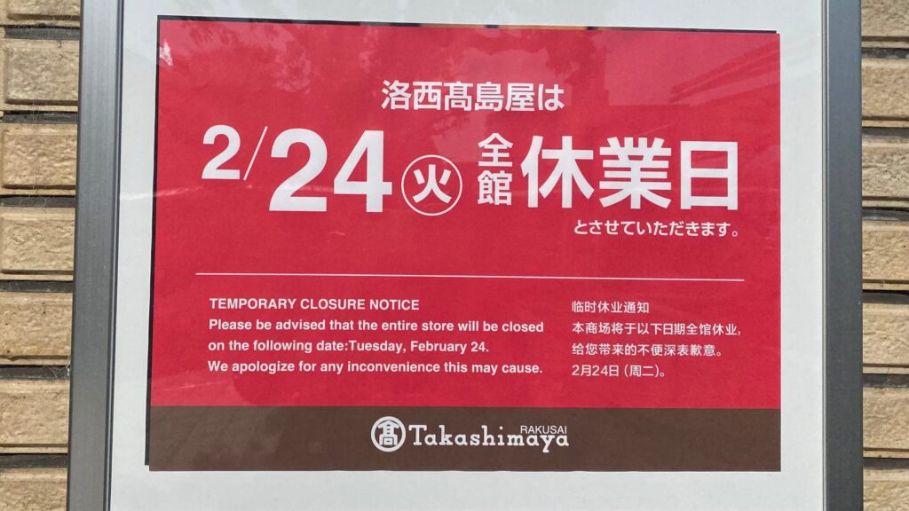 ※洛西高島屋は2月24日(火)、全館休業日です。