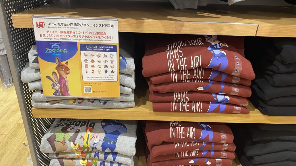 今回は、日頃から愛用しているヒートテックソックスを買い足すために訪れたのですが、店内で偶然ズートピア2のコラボ商品を見つけ、とても心が弾みました。先日投稿したズートピア2初日公開の記事(タイトル「“ズートピア2“公開初日!イオンシネマ桂川行ってきました♪」)も、もしよろしければ併せてご覧ください。
