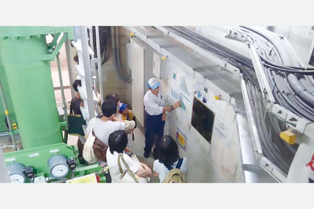 能勢電鉄・山下駅から一庫ダム下流広場まで約2kmのウォーキングの後、ダム職員にレクチャーを受けながらダム内部を見学。普段は入る事のできない場所を見られるチャンス!
