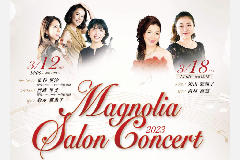 池田市にある逸翁美術館で、気軽に楽しめる美術館でのコンサート「マグノリア サロンコンサート」を2023年3月12日(日)・18日(土)に開催する。
