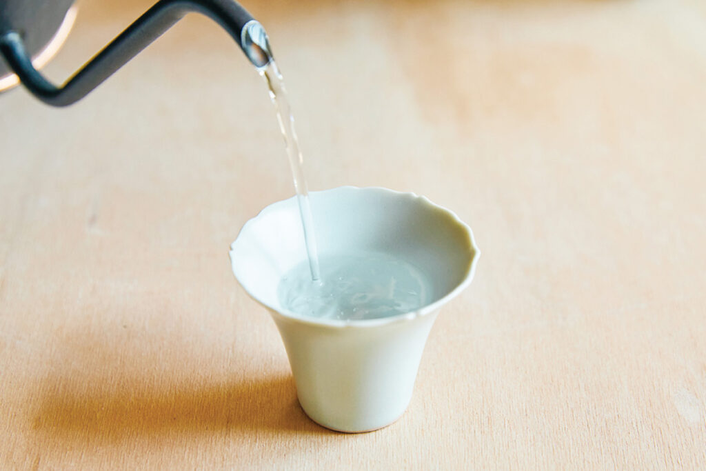 【POINT】「飲みたい量の湯を入れると良いです。湯は器に移すたびに約10℃冷めていきます」。