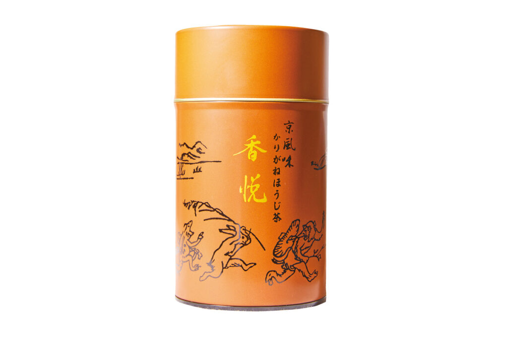 茎の部分を低温で焙煎。上品な水色で滋味深い。『鳥獣人物戯画』をあしらった缶も評判。