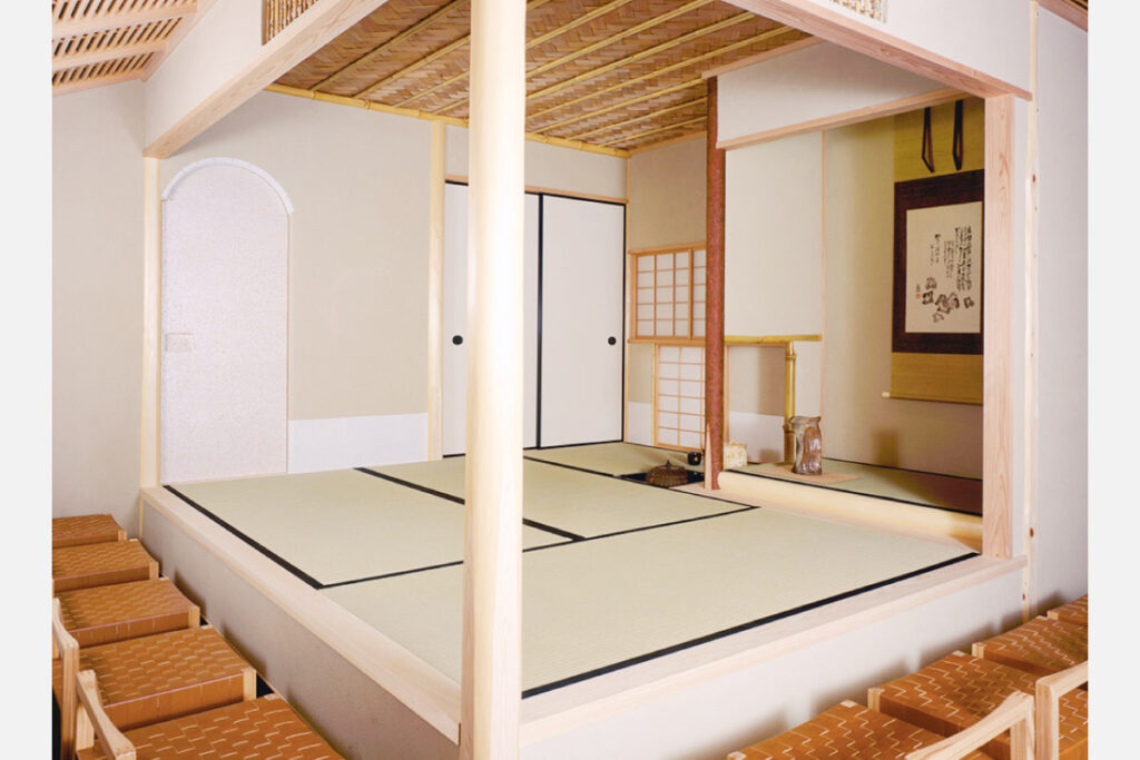 館内には、一三が考案した茶室が「即心庵」として再現されていて、展覧会期間の日曜は呈茶席として抹茶が味わえる。三畳台目の座敷を囲む椅子に座って、往年の茶会を堪能しよう。