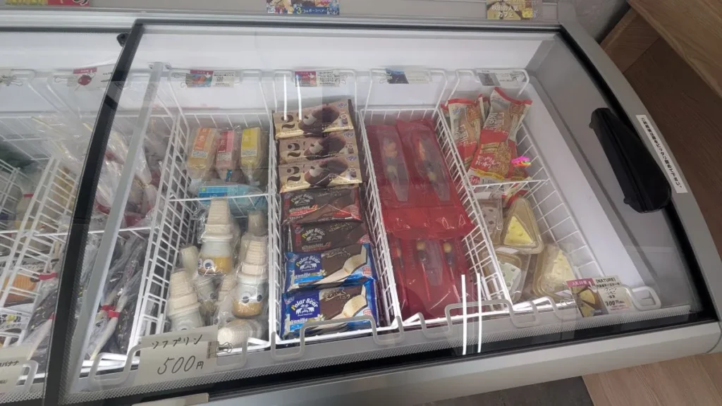 クロワッサン以外にも、少し珍しいスイーツやアイスが並んでいます。SNSでも話題の3Dアイス(500円)や、フルーツを飴でコーティングしたタンフル(フルーツ飴)なども販売されていました。