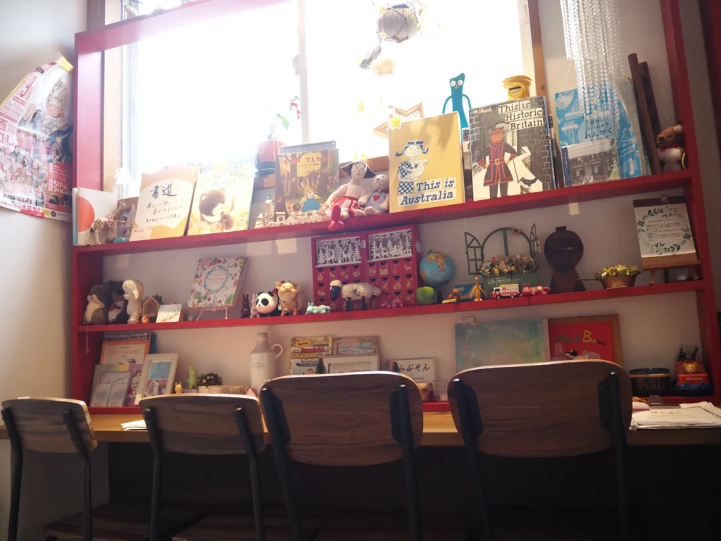 赤を基調に、絵本やおもちゃがところどころに置かれ、どこか懐かしく、あたたかい空間です。