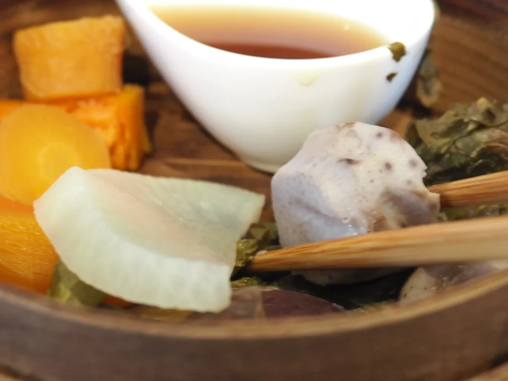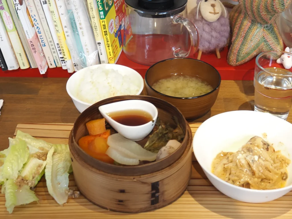 菊芋、かぼちゃ、チンゲン菜など、素材の味を生かした蒸し料理。