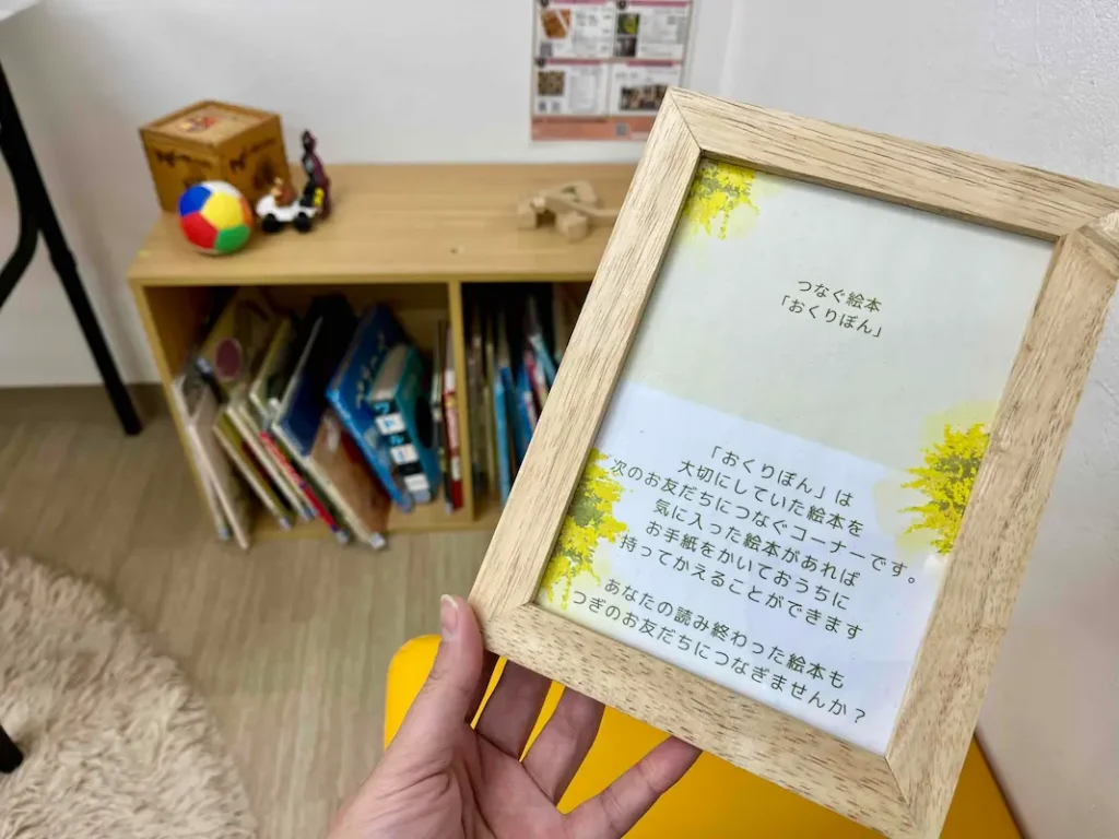小さいお子さんとのお出かけでは、ちょっと休憩する場所があると嬉しいですよね。お子さんの気分転換にも最適なこちらでは『つなぐえほん/おくりぼん』という優しい取り組みが行われていました。気に入った絵本をおうちに持って帰る時にお手紙をしたためる…ありがとうを伝えることの大切さも学べます。