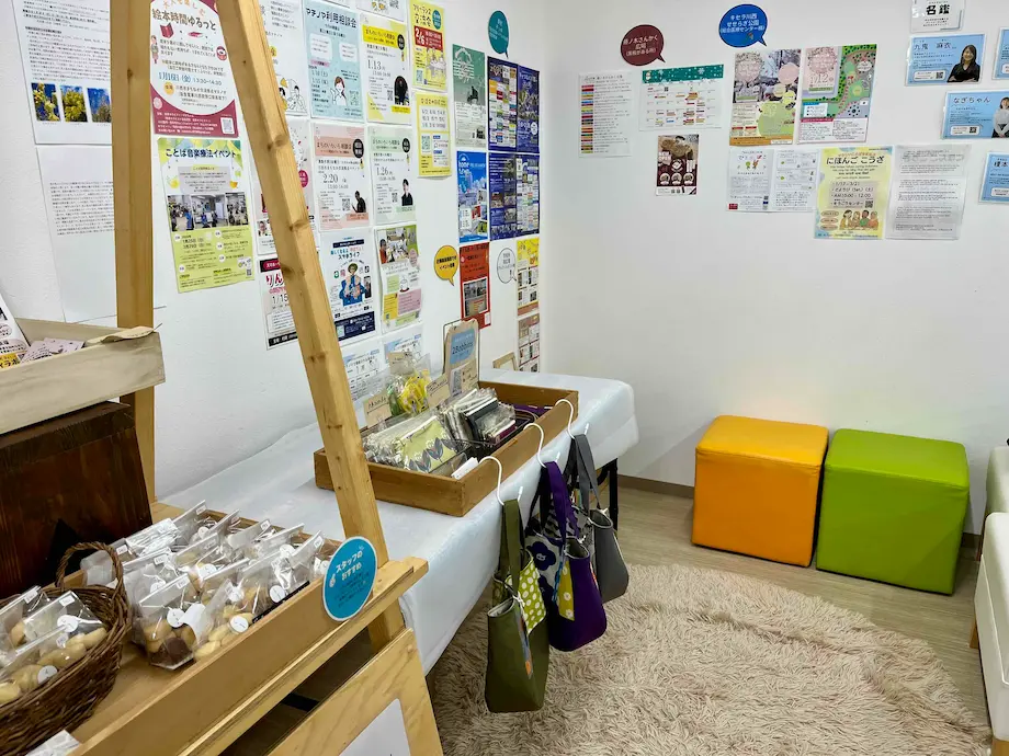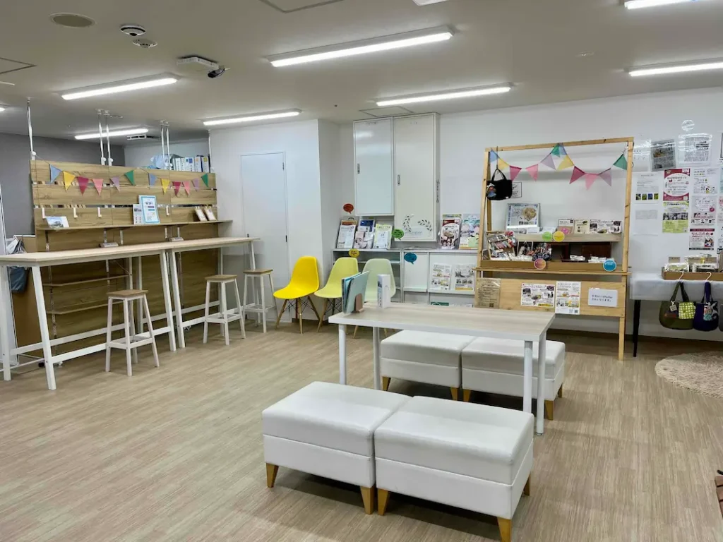 マチノマ内には交流スペース、情報コーナー、まちなか木箱ショップ、キッズスペースがありますよ。