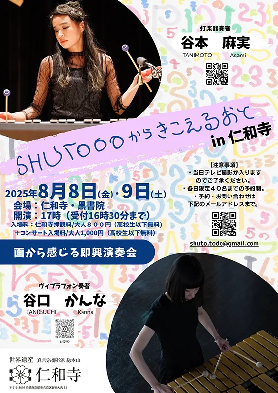 | 問い合わせ | 075-461-1155 即興演奏会予約・問い合わせ shuto.todo@gmail.com |